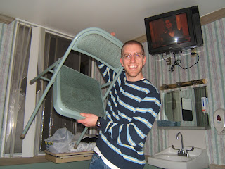 Here is the HORRIBLE chair provided for Kevin to sit in!